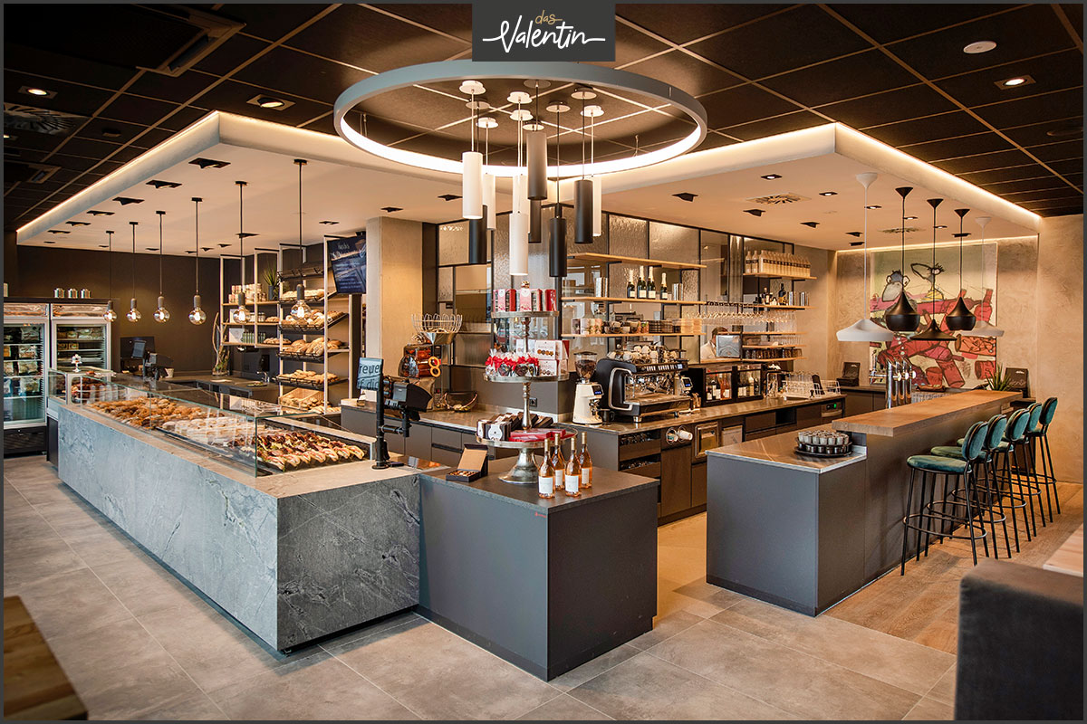 Auf knapp 300 m² vereint "Das Valentin" die Qualitäten in Sachen Frühstück vom Haubiversum mit einem Treffpunkt für Afterwork-Aktivitäten im Stadtquartier Wieselburg. Mit längeren Öffnungszeiten bis 21 Uhr, raffinierter Weinauswahl und einer unverwechselbaren Optik begeistert "Das Valentin" seine Gäste. Davon überzeugt übrigens auch der Monolith als Hingucker auf der Theke!