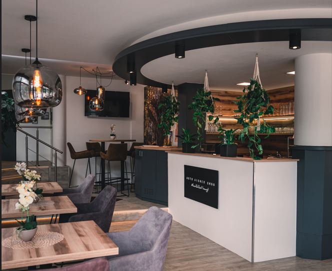 Überdachter Schanigarten, ganztägig große Frühstückskarte, warme und kalte Snacks, regionale Getränke.
